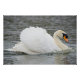 Foto de un cisne nadando a lo largo de un lago persiguiendo a otro cisne