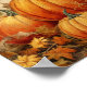 Poster con ilustracion rústico con calabazas naranjas y hojas de otoño. Una vibración de otoño.