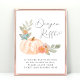 Señal de caída de rifa de pañales para la ducha de bebé que incluye "rifa de pañales" en un guión de bonito con un chorro de corazón y una acuarela de calabaza de naranja pastel, flores y vegetación. Personalice las instrucciones de rifa de pañales en una tipografía gris simple.