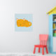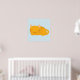 El diseño es agradable y cuenta con un dulce ilustracion de un gatito de tabby naranja tomando una siesta en un bonito corazón rosa o azul y un fondo de huellas de pata.