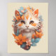 Póster Naranja lindo Floral Kitty Cat