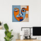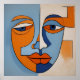 Un diseño de cara dinámico y abstracto en azul y naranja, combinando tranquilidad fresca con calor intenso para un impacto visual cautivador.