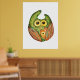 Póster Naranja verde de búho de color agua graciosa