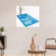 Un chica nadando en una piscina con trampolín. Este diseño parece realmente efectivo en este Poster