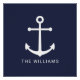 Moderno Poster Náutico Minimalista con ancla blanca con nombre personalizado en blanco moderno sans serif estilo de letra sobre fondo azul marino. Perfecto como decoración de casa de playa, regalo de bienvenida y más.