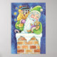 Póster Navidad linda, Santa Claus en chimenea con juguete