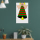 Este divertido poster festivo cuenta con un ángel de Navidades bonitos con pelo rubio, ojos azules y una gran sonrisa. Su cuerpo es una campanilla festiva de color verde y rojo con una capa amarilla en la parte inferior. Este poster es ideal para decorar su casa u oficina de estos Navidades.