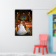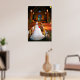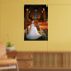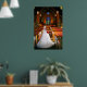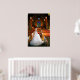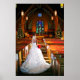 Boda de Invierno Navidades de Vega y Vale Shear Caminando por la Iglesia Decorada de Aisle, sosteniendo árboles de navidad rojo Bouquet en el frente de la Iglesia, donde se llevará a cabo la ceremonia. Pintura Digital, Manipulación Fotográfica Arte Moderno.