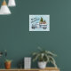 Poster con un diseño festivo. Camión con Navidades de pinos junto con algunos animales de bosque. Un oso, un zorro y un ciervo parados en la parte de atrás yendo a dar un paseo. Diseño creado con acuarelas.