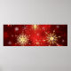 Póster Navidades Copos de nieve dorados con fondo rojo