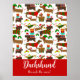 Un magnífico poster de decoración de Navidades temáticos de Dachshund. Este magnífico diseño presenta todas las cosas navideñas, incluidos los regalos y los dulces - ¡y adorables dachshunds por supuesto! Incluyendo la graciosa cita '¡Dachshund a través de la nieve!'.