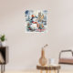 Póster Navidades de acuarela acogedores escena de nieve d