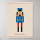 Un poster Navidad con un ilustracion de un Nutcracker con un fondo marrón rayado. Puede borrar el texto y las líneas de puntos dejando en blanco si lo prefiere. ¡Un arte mural perfecto para Navidad!