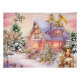Esta escena presenta un hermoso hada rodeada de criaturas de bosques, incluyendo un dragón y un pegasus, representadas en un mágico promontorio invernal de nieve. La acuarela aporta capricho, magia e imaginación, lo que la hace perfecta para un tema de hada de Navidades.