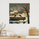 Póster Navidades Retro Village Park Bench Birtage Cottage