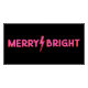 Ilustracion de un rayo rosado entre el texto de Merry y Bright sobre el fondo negro.