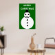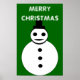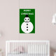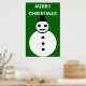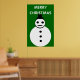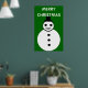 Este divertido poster festivo cuenta con un sonriente muñeco de nieve de Navidades blancos con botones negros y un sombrero superior. Parece un chico genial y le encantaría ayudarte a difundir la alegría de los Navidades este año. El fondo es un tono festivo de verde y hay un borde blanco y un texto blanco nevado que dice "Feliz Navidad". El poster está disponible en varios tamaños, lo que lo convierte en una decoración ideal para un salón familiar o un gran salón.