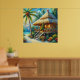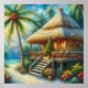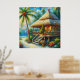 Póster Navidades Tropical Hut Palm Tree Beach Lights