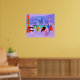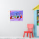 Este Poster Fiesta de Navidades trópicos retro es lo suficientemente festivo para alegrar el panorama vacacional. El diseño personalizado presenta el tipo de fiesta vacacional extremadamente sofisticada que normalmente sólo se ve en películas de Navidades de los años 60. Hay una sala de estar moderna de mediados de siglo llena de fiesteros que disfrutan de una decoración marcadamente violeta. Una mujer encantadora con el uniforme de criada francesa lleva una bandeja de martinis. Ella está parada al lado de una chimenea roja de conos con un fuego abrasador. Hay tres medias verdes colgadas por la chimenea moda con cuidado. En el centro de la sala, una pareja atractiva está sentada en sillas de huevo naranja. La mujer lleva un vestido verde y festivo. El hombre lleva puesto un traje negro con corbata roja. Cada uno lleva un martini. Otra pareja se está volviendo acogedora bajo una araña colgante, amarilla y sputnik. El distinguido caballero de pelo gris lleva puesto un traje azul, camisa azul clara y corbata roja. También está usando un sombrero de Papá Noel y sosteniendo un martini en cada mano, mostrando al mundo que sus días de fiesta están lejos de terminar. Su compañero es una rubia con un vestido rojo impresionante. El Sr. Distinguished debería tener cuidado porque ella está sosteniendo un sorbo de mistletoe en su mano. Delante de la sala hay un árbol de Navidad kitsch, rosa, con adornos verde azulados y una estrella amarilla. Detrás de esta escena, podemos ver a través de las paredes de vidrio del suelo al techo. El escenario al aire libre cuenta con una piscina redonda de color turquesa. Podemos ver la silueta morada de una mujer sumergiendo sus piernas en el agua. Entre las paredes de piedra morada, hay siluetas de palmeras decoradas con adornos y lámparas de Navidad. También se ven las siluetas de los bailarines y de los fiesteros parlantes. Si hay algo que esto prueba, es que, mientras la gente que vive en casas de vidrio no debería arrojar piedras, ¡definitivamente deberían arrojar fiestas!