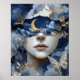 Póster Navy Blue Gold Fantasy Surreal Moon Woman Wall Art