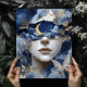 Navy Blue Gold Fantasy Surreal Moon Woman Wall Art