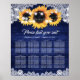 Póster Navy Blue Wood Lace Sunflower Seating Chart