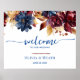 Borgoña profunda y azul marino rico se combina armoniosamente con follaje dorado para un rico tapiz de color. El cartel de bienvenida recoge el tema de la marina y el borgoña. Va bien con el azul polvoriento profundo, la mostaza, la marsala y los rojos de vino. fuentes y colores personalizares.