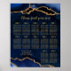 Póster Navy Gold Agate Wedding Seating Chart 12 Table