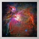 Tamaño recomendado para un marco estándar: 42x42 pulgadas (tamaño original: 30x30 pulgadas a 300 PPI, 81 MP). Hay muchos otros tamaños disponibles. Haga clic en '¡Personalizar!' a la derecha. Los telescopios espaciales Spitzer y Hubble de la NASA se han unido para exponer el caos que las estrellas del bebé están creando a 1,500 años luz de distancia en una nube cósmica llamada la nebulosa Orion. Esta impresionante composición infrarroja y de luz visible indica que cuatro estrellas macizas monstruosas en el centro de la nube pueden ser los principales culpables en la conocida constelación Orion. Las estrellas se llaman colectivamente el Trapezium. Su comunidad puede ser identificada como la mancha amarilla cerca del centro de la imagen. Los movimientos de verde en la visión ultravioleta y visible de Hubble revelan el hidrógeno y el gas sulfuroso que han sido calentados e ionizados por la intensa radiación ultravioleta de las estrellas del Trapezium. Mientras tanto, la visión infrarroja de Spitzer expone moléculas ricas en carbono llamadas hidrocarburos aromáticos policíclicos en la nube. Estas moléculas orgánicas han sido iluminadas por las estrellas del Trapezium y se muestran en el compuesto como espumas de rojo y naranja. En la Tierra, se encuentran hidrocarburos aromáticos policíclicos en tostadas quemadas y en escape de automóviles. Juntos, los telescopios exponen las estrellas de Orión como un arco iris de puntos rotos a lo largo de la imagen. Los puntos amarillo-naranja revelados por Spitzer son en realidad estrellas infantiles profundamente incrustadas en un capullo de polvo y gas. Hubble mostraba estrellas menos incrustadas como motas de color verde, y estrellas de primer plano como manchas azules. Vientos estelares de grupos de estrellas recién nacidas esparcidas por toda la nube grabaron todas las bien definidas crestas y cavidades de Orión. La gran cavidad cerca de la derecha de la imagen fue probablemente tallada por vientos de las estrellas del Trapezium. Situada a 1.500 años luz de la Tierra, la nebulosa de Orion es el lugar más brillante de la espada de Orion, o la constelación de "Hunter". La nube cósmica es también nuestra fábrica más cercana de formación de estrellas, y los astrónomos creen que contiene más de 1.000 estrellas jóvenes. La constelación de Orión es un paisaje familiar en el cielo nocturno de otoño e invierno en el hemisferio norte. La nebulosa es invisible para los ojos, pero se puede resolver con binoculares o telescopios pequeños. Esta imagen es una composición de color falso en la que la luz detectada a longitudes de onda de 0,43, 0,50 y 0,53 micras es azul. La luz a longitudes de onda de 0,6, 0,65 y 0,91 micras es verde. La luz a 3,6 micras es naranja y 8,0 micras es roja. Crédito: NASA/JPL-Caltech/STScI.