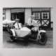 Foto vintage de Jimmy Murphy, ganador de la carrera de 500 - millas en Indianápolis, Indiana, 30 de mayo de 1922, y del mecánico Ernie Olson, sentados en la motocicleta Harley Davidson y en sidecar. Foto tomada el 22 de junio de 1922. Carro de carrera en el fondo. Medio original LOC: impresión fotográfica.
