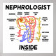 A los nehrologos les agradará este poster que presenta todas las partes clave del nefrón de un riñón junto con el dicho "Nefrologista interno". ¡poster educativo y científico para cualquiera que piense en sus riñones y funciones de excreción desde una perspectiva anatómica!