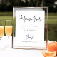 Termine su boda o ducha en el bar mimosa con este sencillo y elegante cartel con ricas letras negras de ceniza sobre un fondo blanco y fresco. "Mimosa Bar" o la cabecera de su personalizado aparece en la parte superior de la letra manuscrita moderna. Personalice con instrucciones breves, "Saludos", y sus nombres y/o fecha de evento debajo.