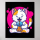 Póster Neko Kawaii Boba Tea De Gato Ríe Al Estilo Anime