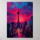 Póster Neo Expressionist Seoul Skyline Vibrant Sunset