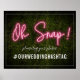 Una señal de neón con el texto "Oh Snap!" El fondo es madera de paja. El texto es blanco.