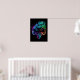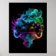 Controlador de juego de neón arco iris colorido con humo de galaxia fluorescente.