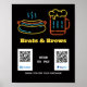 Moderno y elegante opción de pago de código QR poster para su cabina de eventos, camión de comida móvil o puesto de concesión, que incluye un neón de perro caliente y una taza de cerveza sobre fondo negro. Agregue el código qr de su personalizado y los detalles de la compañía.