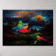 Un paisaje de fantasía escalofriante e hipnotizante con formas fantasmagóricas brillantes a la deriva a través de colinas de neón y bosques embrujados. Esta escena psicodélica de horror combina la energía sobrenatural con el color vívido para crear un ambiente inolvidable. Una impresión de arte perfecta para los fanáticos de sueños espeluznantes, historias fantasmas y fantasía surrealista.