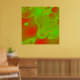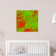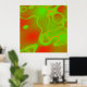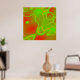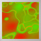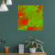 Un patrón artístico abstracto de neón verde y rojo con salpicaduras de naranja le da a esta colorida imagen un aspecto casi de ciencia ficción.