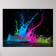 Fotografía dinámica y vibrante de una zapatera casual sobre un fondo negro mate. Un espectacular salpicón de pintura de neón, con colores en rosa brillante, azul eléctrico y verde brillante, surge por detrás del zapato, creando una sensación de energía y movimiento explosivos. Las gotas de pintura están congeladas en medio del aire, contrastando marcadamente con los sólidos tonos grises del zapatero. La escena es artística y de alta energía.