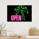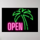 Póster Neon Palm Tree Green & Pink Open Rótulo Poster