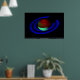 Volando sobre el lado no iluminado de los anillos de Saturno, la nave espacial Cassini capta el resplandor de Saturno, representado en brillantes tonos de azul eléctrico, zafiro y verde menta, mientras que la sombra del planeta arroja una amplia red sobre los anillos.