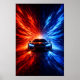 Póster Neon Split Speed Supercar – Red & Blue Energy Burs