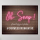Una señal de neón con el texto "Oh Snap!" El fondo es tablón de madera. El texto es blanco.