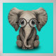Póster Nerdy Baby Elephant Viendo Gafas