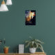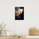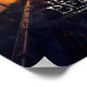 BROMAS FANTÁSTICAS Y DÓNDE ENCONTRARLAS™ | Este poster de películas de la puesta del sol presenta a NEWT SCAMANDER™ parado al lado del agujero gigante roto en el costado de un edificio de una bestia fantástica escapada, por encima de ver el tren cercano mientras pasa.
