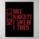 Póster Nice Naughty I Swear I Tried Funny Xmas