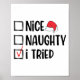 Póster Nice Naughty I Tried Christmas List Funny Xmas