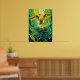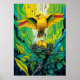 Esta impresionante pieza presenta a un pájaro cantor dorado que regresa a su nido, con las alas extendidas en un abrazo protector sobre dos polluelos. Rodeado de exuberante follaje verde de la selva y chorros de color, combina la vida silvestre con una artística expresiva. Ideal para amantes de las aves y fanáticos de la decoración inspirada en la selva.
