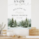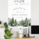Fije el tono para una acogedora y elegante celebración de invierno con este letrero de bienvenida de ducha de novia "Nieve en amor". Con pinos acuáticos pintados a mano con nieve y montañas suaves y negras como telón de fondo, este diseño es perfecto para novias de invierno que aman una estética rústica y romántica. La frase "Nieve en amor" está delicadamente escrita en la parte superior, lo que le da un toque estacional a la decoración de la ducha de novia. Personalizable con el nombre de la futura novia y fecha de la ducha, este letrero da una cálida bienvenida a los clientes y hace que el evento sea un lugar muy agradable. Ya sea que lo exhibas con un caballete en la entrada del recinto, lo encuentres para la mesa de regalo o lo pongas cerca del bar de cacao caliente, le añade un toque de reflexión y festividad a tu celebración. Creado con amor por las bodas de invierno y las duchas de novias, este cartel es una gran adición a eventos rústicos, de bosque o relacionados con el tema de los Navidades. Simplemente actualice los campos de texto editables para personalizarlos en minutos. Si necesita ayuda para este diseño o productos que coincidan con él, envíe un correo electrónico a zazzle@fivelittlelemons.com